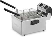 The Presto 05411 GranPappy Electric Deep Fryer offers a 6-cup oil capacity with 1500 watts of power, featuring a fixed 375°F temperature and non-stick interior for easy cleaning, all in a compact 9.1 x 8.8 x 8.5-inch, 4.2-pound design. The Vexon 1800W 5 Liters/21 Cups Large Electric Deep Fryer boasts a 5-liter capacity, adjustable thermostat…